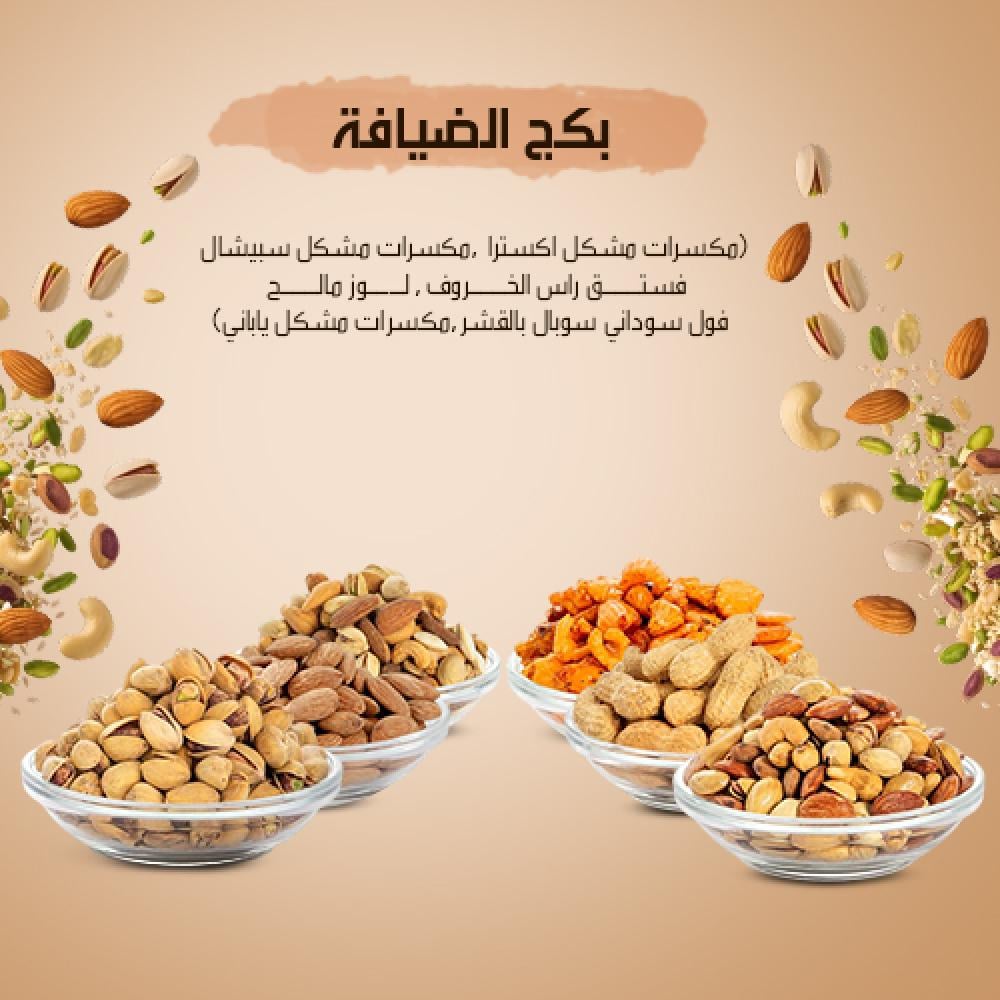 الضيافة عنوان الكرم، ومع بكج الضيافة من الذوّاقة ستجد كل ما تحتاجه لتقديم تجربة فاخرة لضيوفك. تشكيلة متنوعة من أجود المكسرات المختارة، محمصة بعناية لتجمع بين الطعم الأصيل والجودة العالية.