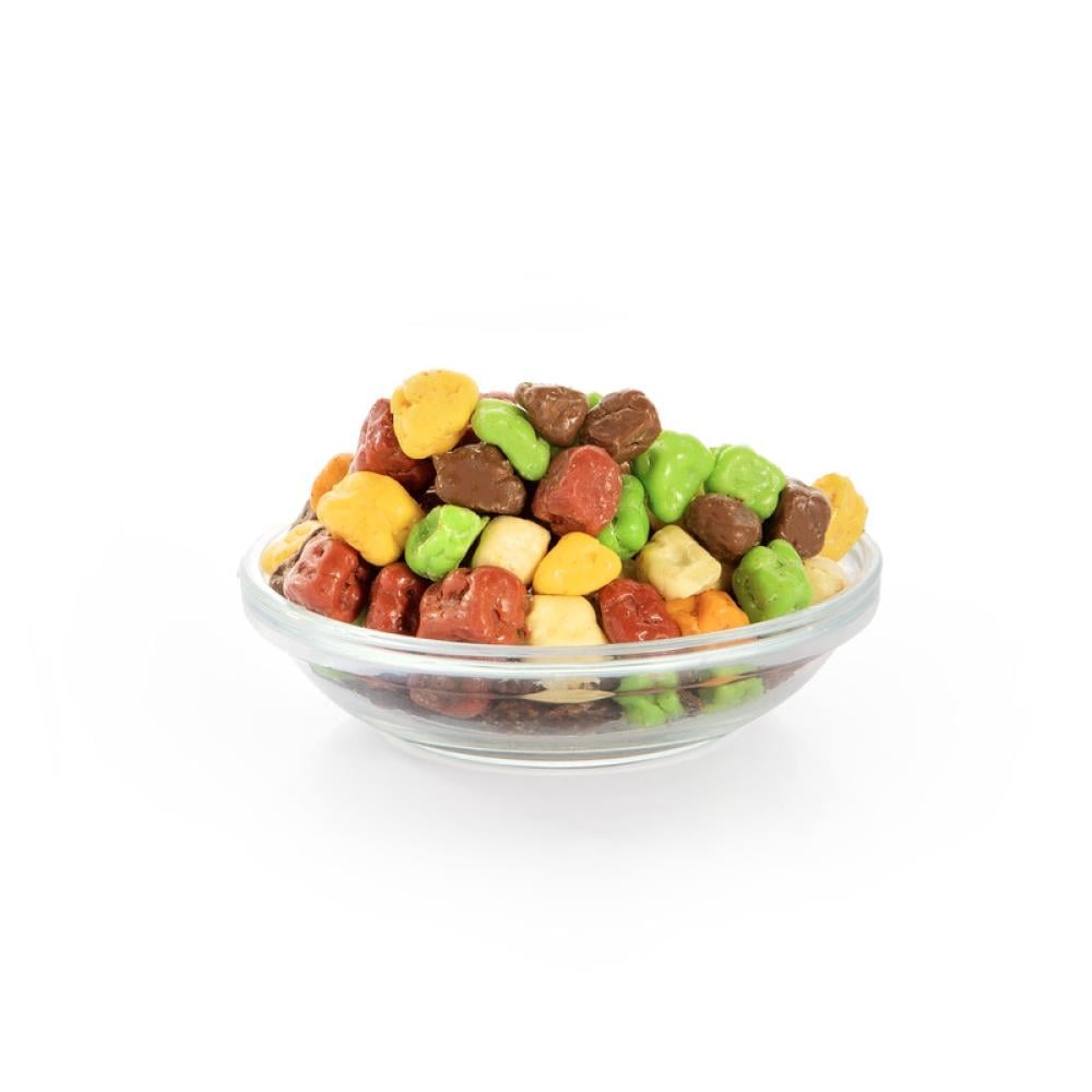 - المذاق والجودة: قطع فواكه مجففة مختارة، مثل الأناناس، الكرز، المشمش، التوت وغيرها، مغطاة بطبقة مقرمشة من السكر أو نكهات خاصة. كل نوع يقدّم لك تجربة مختلفة بنكهات غنية وملمس يذوب بالفم.